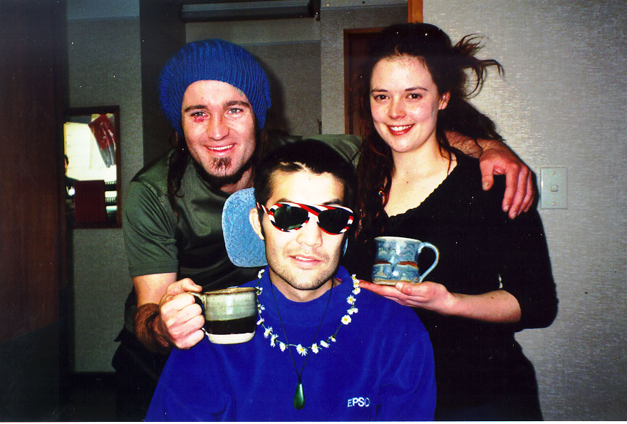 Sam, Nina, and me with the handmade mugs I gave them at ISIS