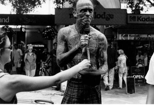 Tattooed street performer